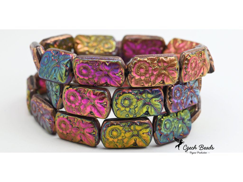 Rectangles with flower -19x11mm